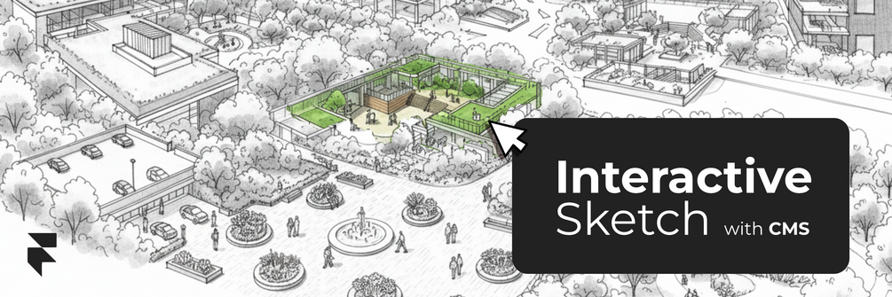 The ultimate interactive storytelling tool for Framer. The CMS Dynamic Sketch component isn't just an image—it's a fully customizable interaction system. It utilizes a "Color-Spill" technique where a transparent overlay reveals itself over a base sketch, accompanied by a CMS-driven tooltip.